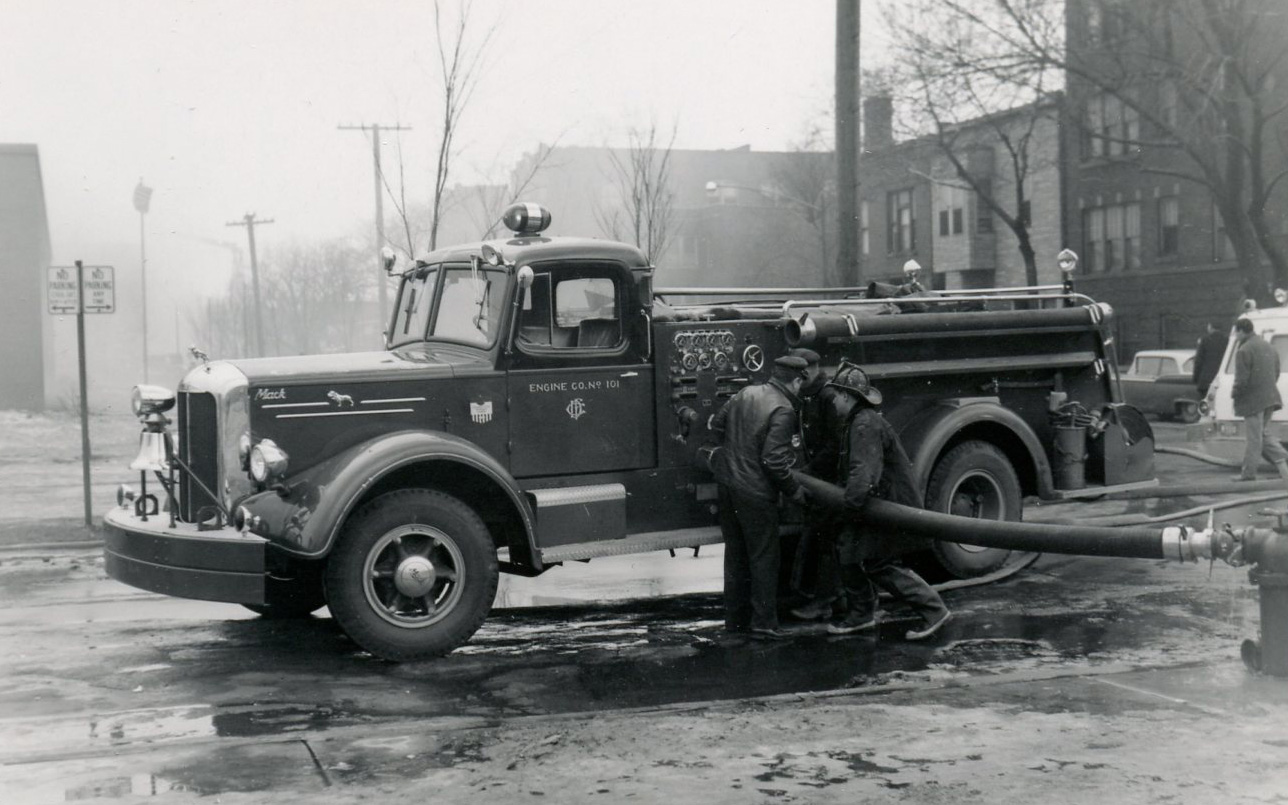 Title: | Fire Apparatus Being Connected to Hydrant, Photograph |