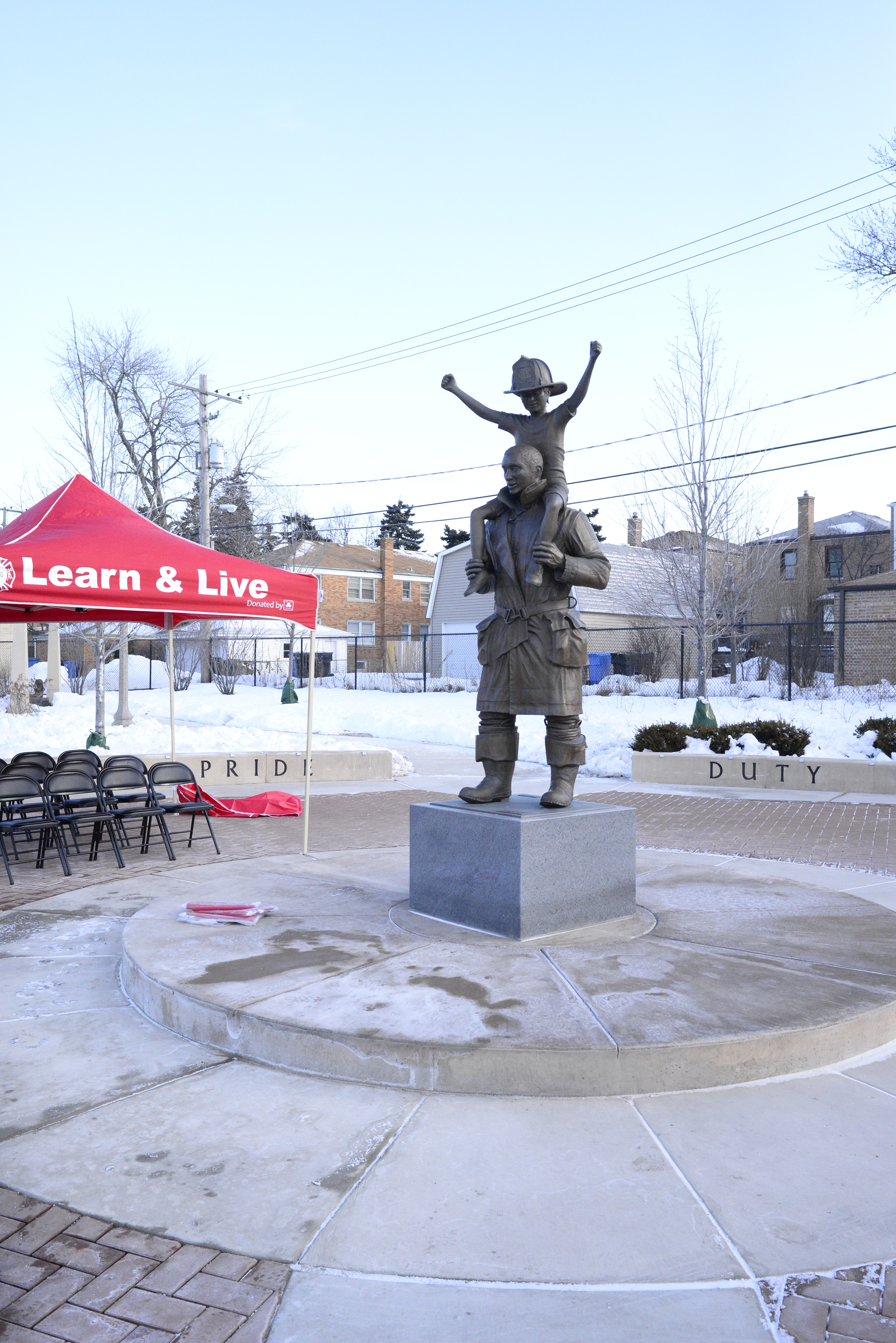 Description: | This photograph shows a statue erected in King-Lockhart Park in honor of Chicago Fire Department Firefighter/Paramedic Patrick King and Firefighter Anthony Lockhart who died in the line of duty at that site in 1998. |