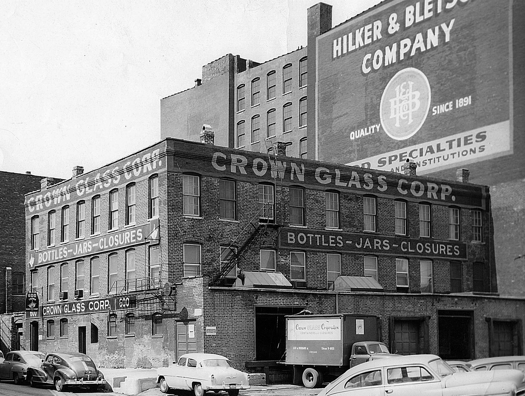 Description: This photograph shows the Crown Glass Corp. building prior to the Hubbard Street Fire.