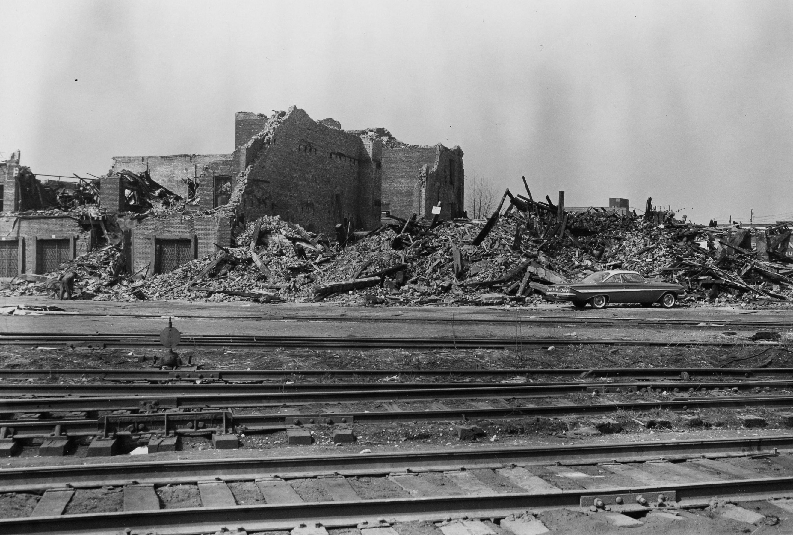 Description: This photograph shows the wreckage after the Hubbard Street Fire.