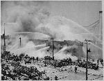 On June 16, 1941, a fire broke out at the Chicago Mill and Lumber Company, a manufacturer of wooden boxes on North Ogden Avenue. The fire started in bales of paper located on the first floor of the two story brick building. The shooting embers then ignited a fire on the second floor by sparking a mill dust explosion. With the rush from the blast, the flames spread quickly throughout the rest of the building and caused the roof to collapse. Three Chicago firefighters, Norris Coulombe (Engine 42), George Michalski (Engine 3), and Henry Bodenlos (Engine 4), were trapped by the collapse in the burning rubble.